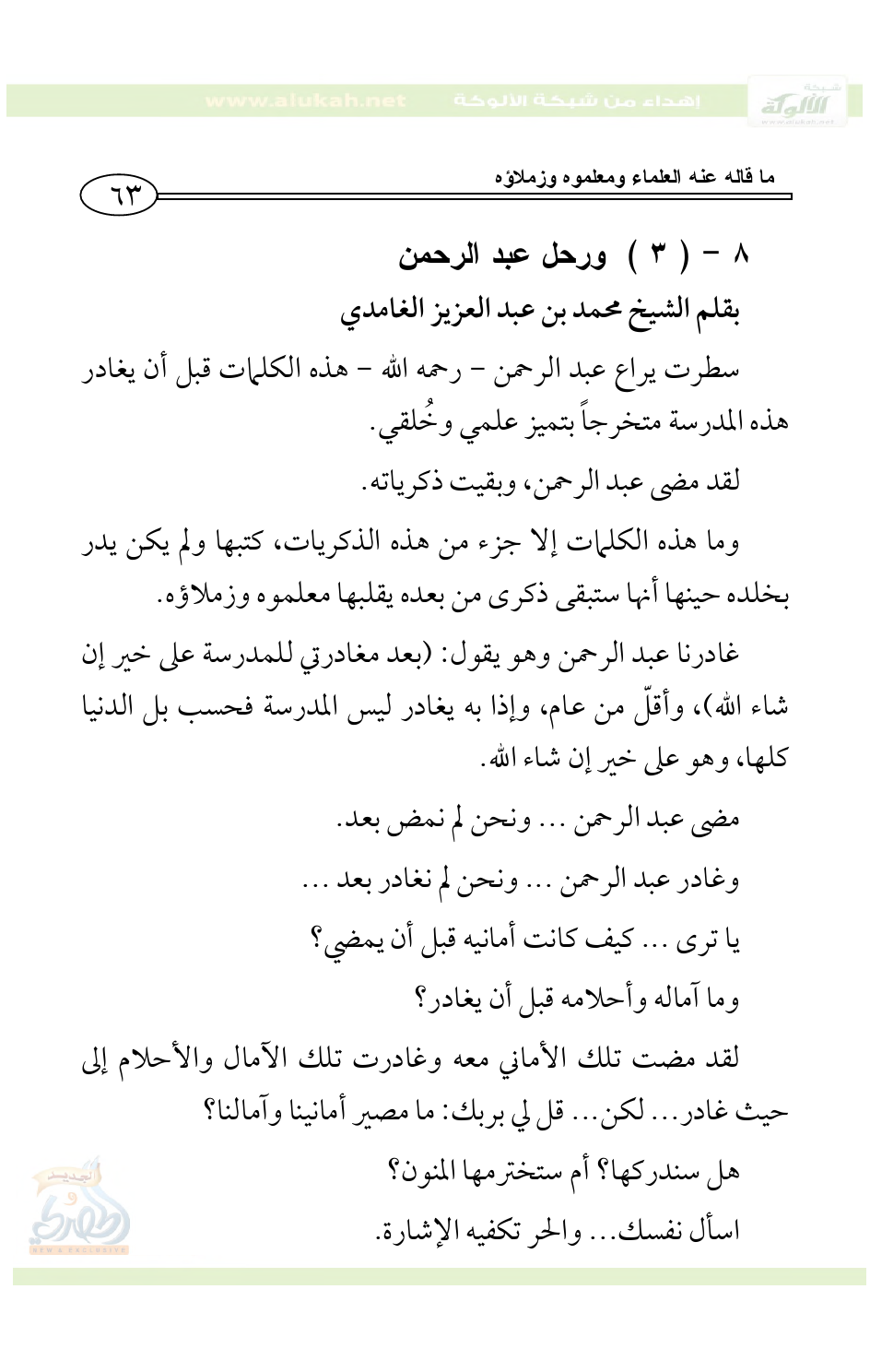 لقد مضى عبد الرحمن، وبقيت ذكرياته.