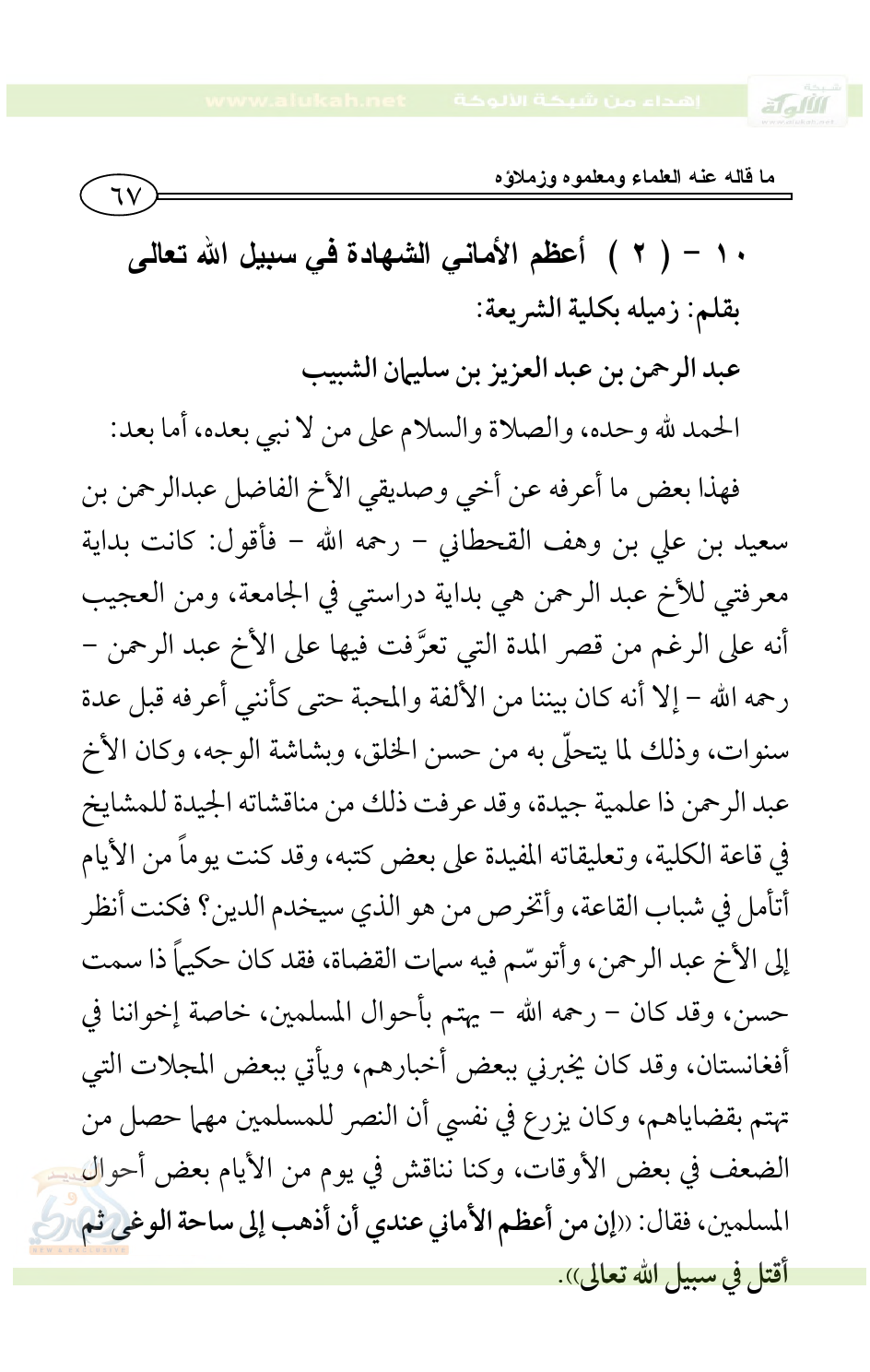 10 - (2) أعظم الأماني الشهادة في سبيل الله تعالى