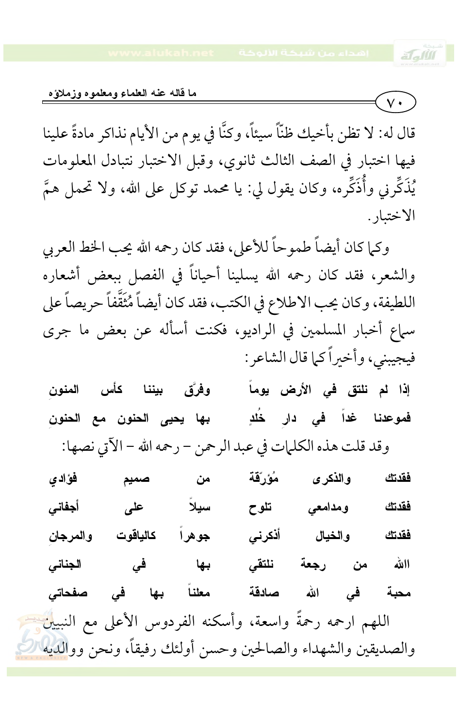وقد قلت هذه الكلمات في عبد الرحمن - رحمه الله - الآتي نصها: