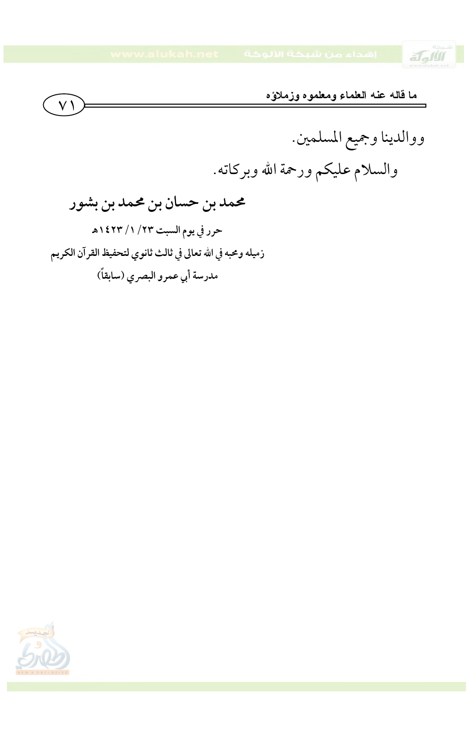 زميله ومحبه في الله تعالى في ثالث ثانوي لتحفيظ القرآن الكريم