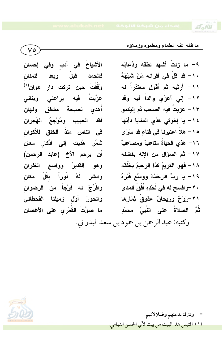 وكتبه: عبد الرحمن بن حمود بن سعد البدراني.