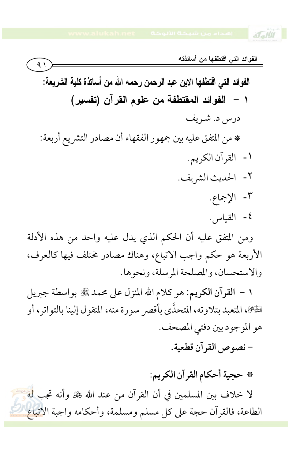 القرآن هو المصدر الأول للتشريع، وأساس هذا التشريع: