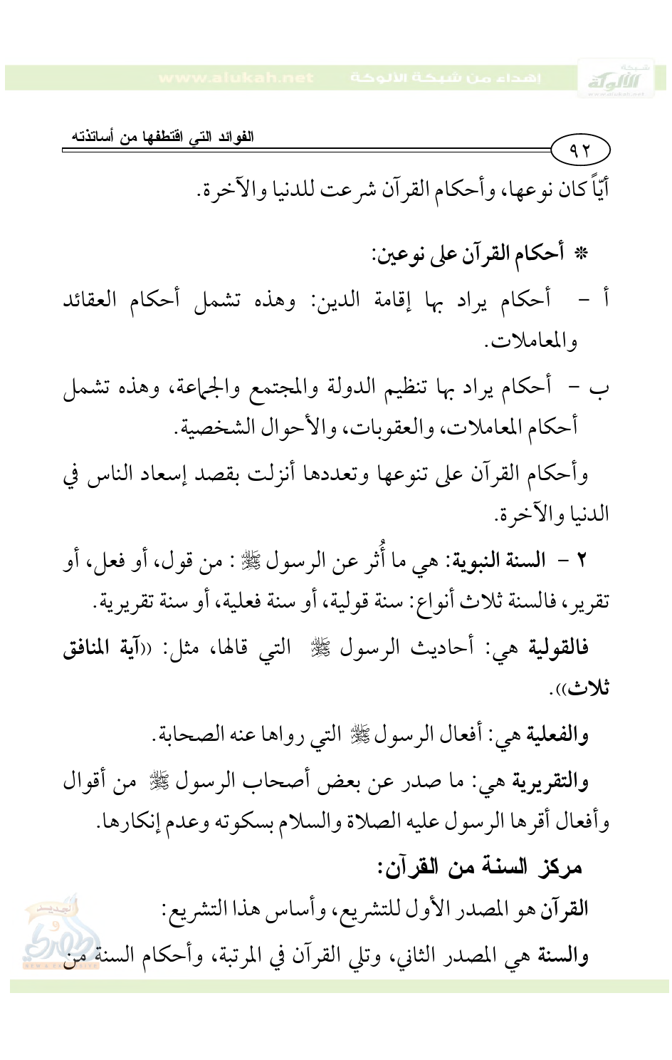 1 - سنة تقرر وتؤكد حكماً جاء به القرآن، فيكون الحكم مرجعه الكتاب والسنة معاً، كتحريم القتل بغير حق.