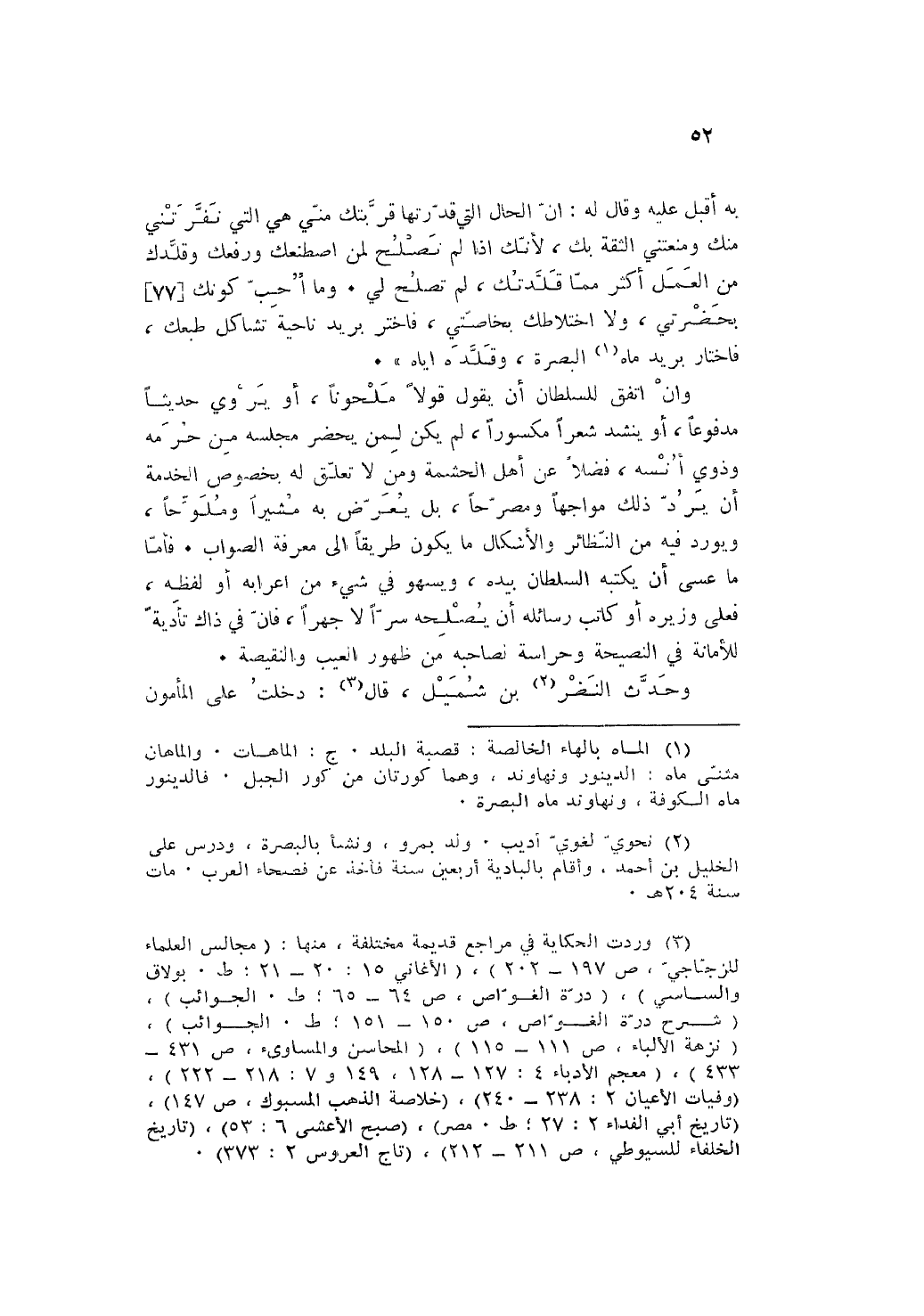 وَإِن اتّفق للسُّلْطَان ان يَقُول قولا ملحونا أَو يروي حَدِيثا مدفوعا أَو ينشد شعرًا مكسورا لم يكن لمن يحضر مَجْلِسه من حرمه وَذَوي انسه فضلا عَن أهل الحشمة وَمن لَا تعلق لَهُ بِخُصُوص الْخدمَة ان يرد ذَلِك مواجها ومصرحا بل يعرض بِهِ مُشِيرا وملوحا ويورد فِيهِ من النَّظَائِر والإشكال مَا يكون طَرِيقا إِلَى معرفَة الصَّوَاب فَأَما مَا عَسى ان يَكْتُبهُ السُّلْطَان بِيَدِهِ ويسهو فِي شَيْء من إعرابه أَو لَفظه فعلى وزيره أَو كَاتب رسائله أَن يصلحه سرا لَا جَهرا فَإِن فِي ذَاك تأدية للأمانة فِي النَّصِيحَة وحراسة لصَاحبه من ظُهُور الْعَيْب والنقيصة.