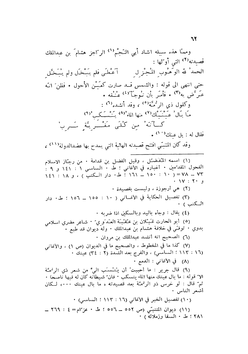 وَمِمَّا هَذِه سَبيله انشاد أبي النَّجْم الراجز هِشَام بن عبد الْملك قصيدته الَّتِي أَولهَا: