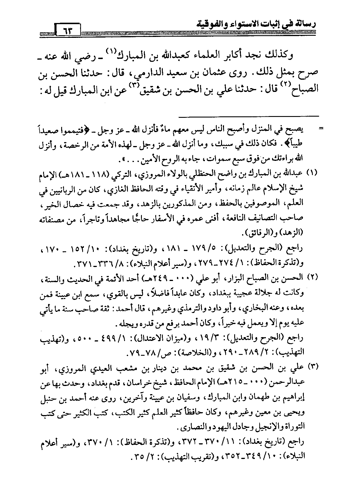 كتاب رسالة في إثبات الاستواء والفوقية ومسألة الحرف والصوت في القرآن المجيد