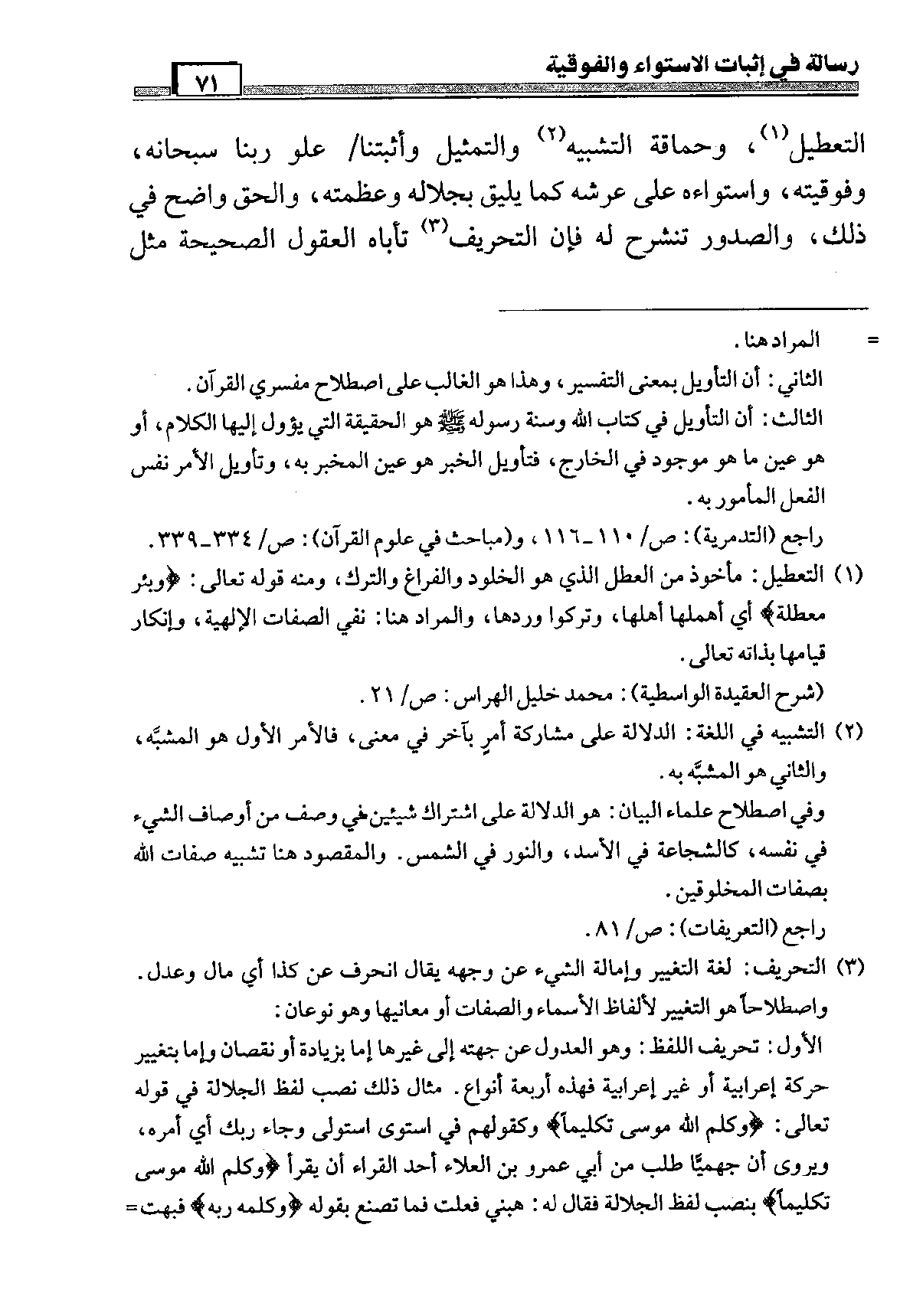 كتاب رسالة في إثبات الاستواء والفوقية ومسألة الحرف والصوت في القرآن المجيد