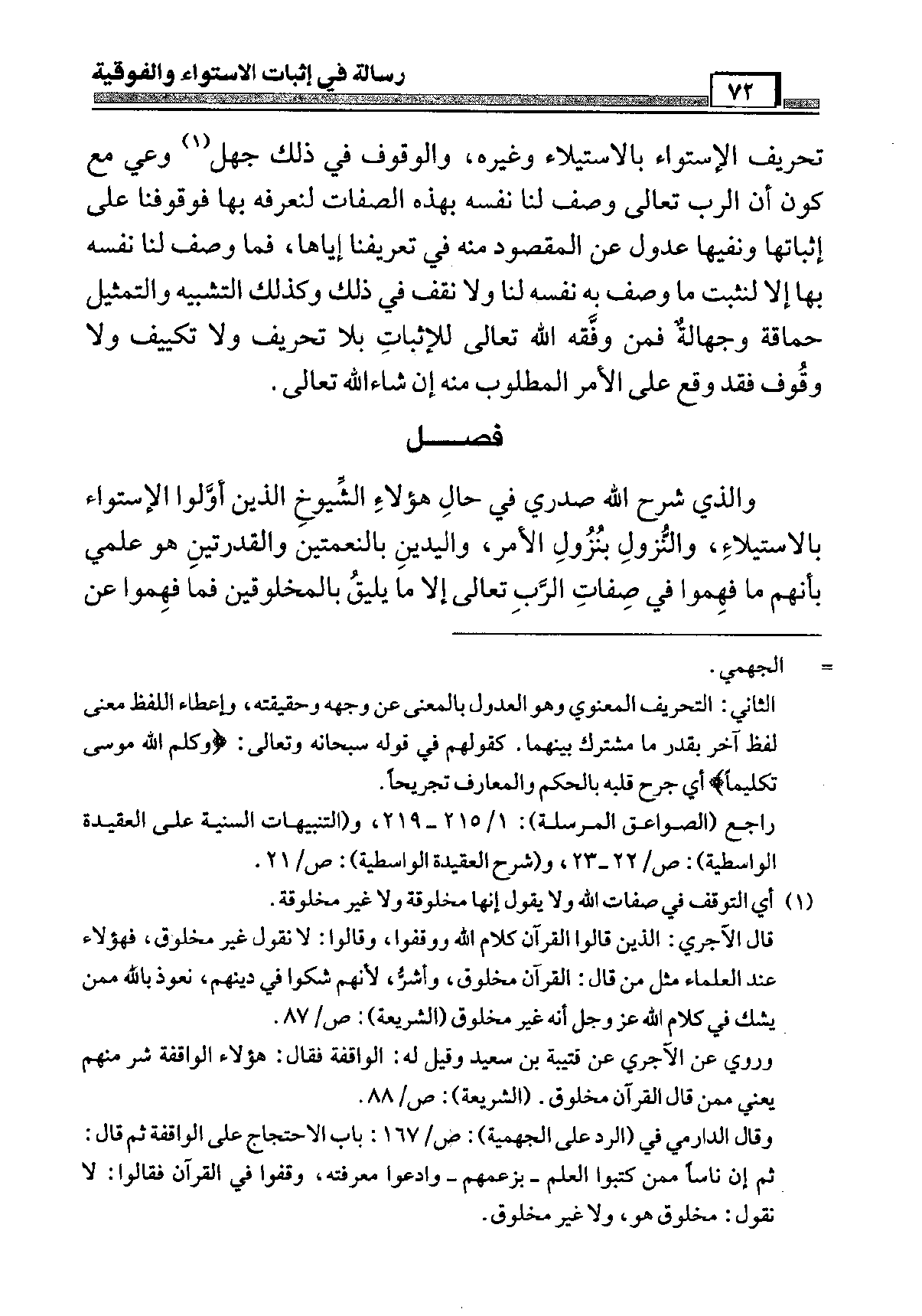 كتاب رسالة في إثبات الاستواء والفوقية ومسألة الحرف والصوت في القرآن المجيد