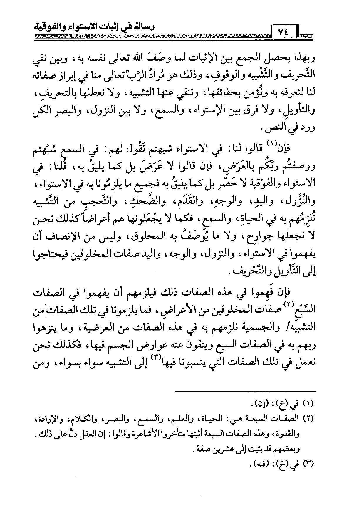كتاب رسالة في إثبات الاستواء والفوقية ومسألة الحرف والصوت في القرآن المجيد