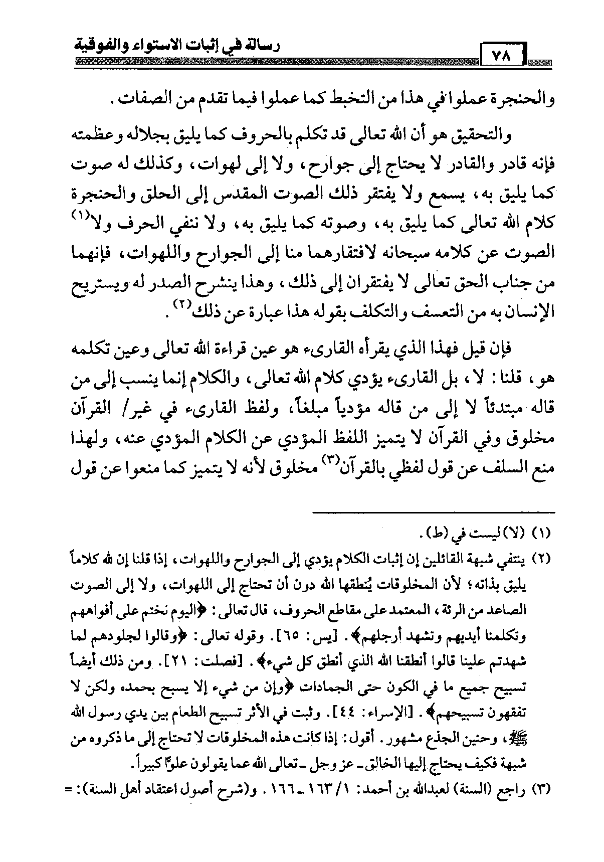 كتاب رسالة في إثبات الاستواء والفوقية ومسألة الحرف والصوت في القرآن المجيد