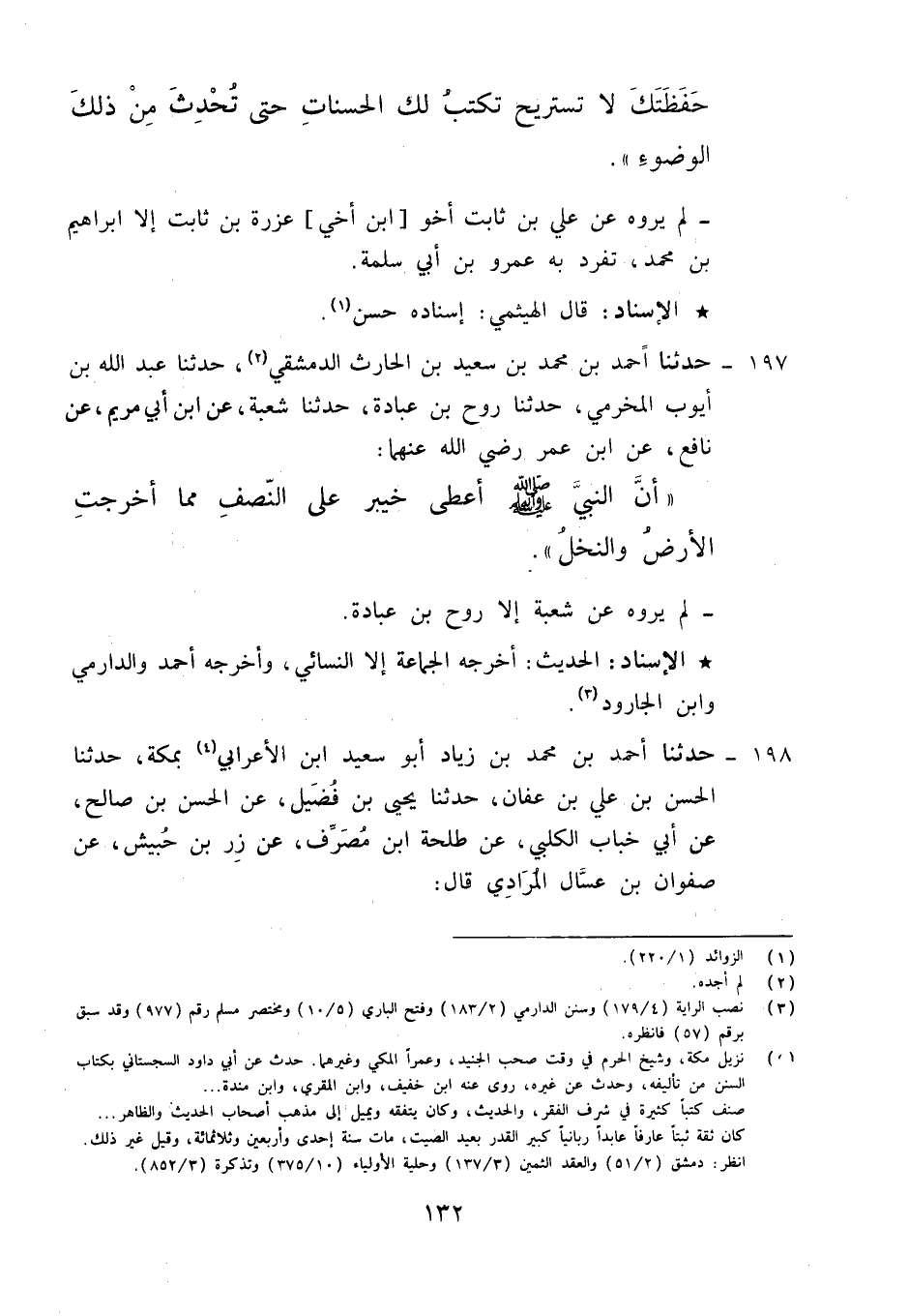 197 - حَدَّثَنَا أَحْمَدُ بْنُ مُحَمَّدِ بْنِ سَعِيدِ بْنِ الْحَارِثِ الدِّمَشْقِيُّ، حَدَّثَنَا عَبْدُ اللَّهِ بْنُ أَيُّوبَ الْمُخَرِّمِيُّ، حَدَّثَنَا رَوْحُ بْنُ عُبَادَةَ، حَدَّثَنَا شُعْبَةُ، عَنِ ابْنِ أَبِي مَرْيَمَ، عَنْ نَافِعٍ، عَنِ ابْنِ عُمَرَ رَضِيَ اللَّهُ عَنْهُمَا أَنَّ النَّبِيَّ صَلَّى اللهُ عَلَيْهِ وَسَلَّمَ: «§أَعْطَى خَيْبَرَ عَلَى النِّصْفِ مِمَّا أَخْرَجَتِ الْأَرْضُ وَالنَّخْلُ» لَمْ يَرْوِهِ عَنْ شُعْبَةَ إِلَّا رَوْحُ بْنُ عُبَادَةَ