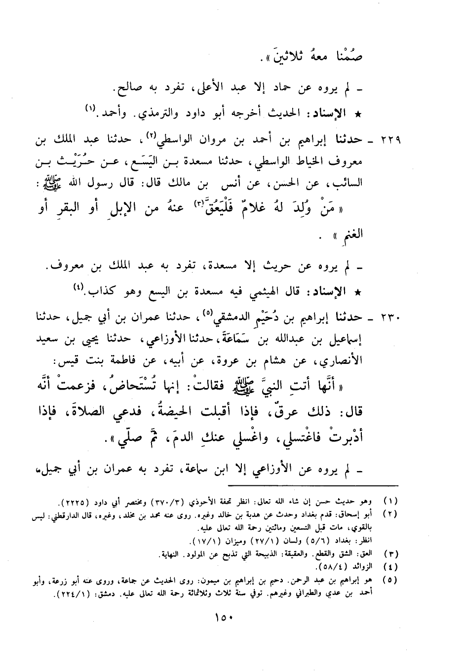 229 - حَدَّثَنَا إِبْرَاهِيمُ بْنُ أَحْمَدَ بْنِ مَرْوَانَ الْوَاسِطِيُّ، حَدَّثَنَا عَبْدُ الْمَلِكِ بْنُ مَعْرُوفٍ الْخَيَّاطُ الْوَاسِطِيُّ، حَدَّثَنَا مَسْعَدَةُ بْنُ الْيَسَعِ، عَنْ حُرَيْثِ بْنِ السَّائِبِ، عَنِ الْحَسَنِ، عَنْ أَنَسِ بْنِ مَالِكٍ قَالَ: قَالَ رَسُولُ اللَّهِ صَلَّى اللَّهُ عَلَيْهِ وَآلِهِ وَسَلَّمَ: «§مَنْ وُلِدَ لَهُ غُلَامٌ فَلْيَعِقَّ عَنْهُ مِنَ الْإِبِلِ أَوِ الْبَقَرِ أَوِ الْغَنَمِ» لَمْ يَرْوِهِ عَنْ حُرَيْثٍ إِلَّا مَسْعَدَةُ تَفَرَّدَ بِهِ عَبْدُ الْمَلِكِ بْنُ مَعْرُوفٍ