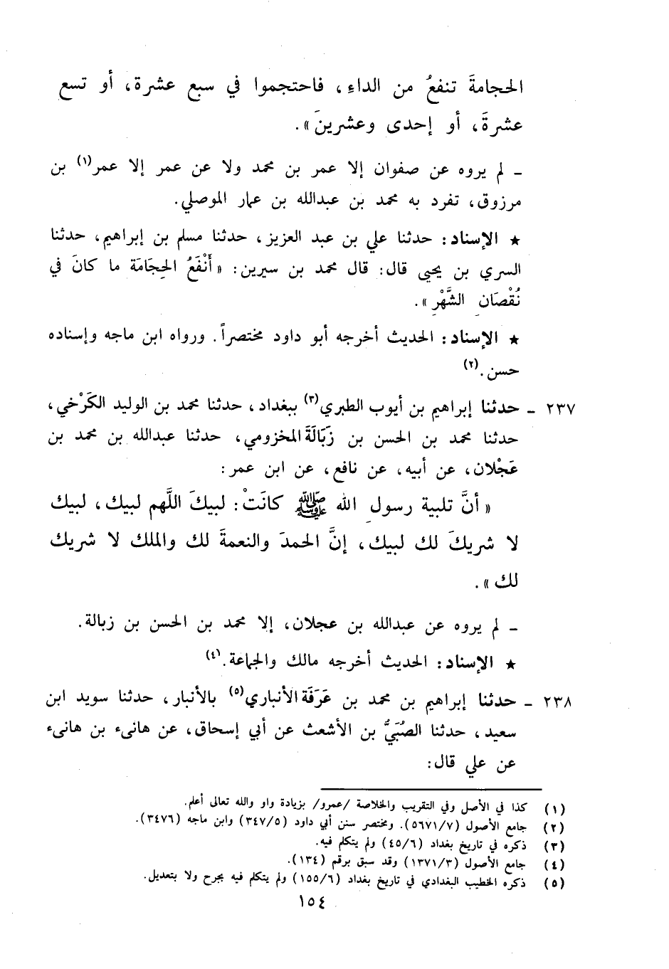 حَدَّثَنَا إِبْرَاهِيمُ بْنُ أَيُّوبَ الطَّبَرِيُّ بِبَغْدَادَ , حَدَّثَنَا مُحَمَّدُ بْنُ الْوَلِيدِ الْكَرْخِيُّ، حَدَّثَنَا مُحَمَّدُ بْنُ الْحَسَنِ بْنِ زَبَالَةَ الْمَخْزُومِيُّ، حَدَّثَنَا عَبْدُ اللَّهِ بْنُ مُحَمَّدِ بْنِ عَجْلَانَ، عَنْ أَبِيهِ، عَنْ نَافِعٍ، عَنِ ابْنِ عُمَرَ، أَنْ §تَلْبِيَةَ رَسُولِ اللَّهِ صَلَّى اللَّهُ عَلَيْهِ وَآلِهِ وَسَلَّمَ كَانَتْ: «لَبَّيْكَ اللَّهُمَّ لَبَّيْكَ , لَبَّيْكَ لَا شَرِيكَ لَكَ لَبَّيْكَ , إِنَّ الْحَمْدَ وَالنِّعْمَةَ لَكَ , وَالْمُلْكَ , لَا شَرِيكَ لَكَ» لَمْ يَرْوِهِ عَنْ عَبْدِ اللَّهِ بْنِ عَجْلَانَ إِلَّا مُحَمَّدُ بْنُ الْحَسَنِ بْنِ زُبَالَةَ