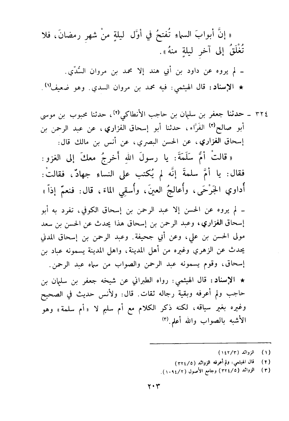 324 - حَدَّثَنَا جَعْفَرُ بْنُ سُلَيْمَانَ بْنِ حَاجِبٍ الْأَنْطَاكِيُّ، حَدَّثَنَا مَحْبُوبُ بْنُ مُوسَى أَبُو صَالِحٍ الْفَرَّاءُ، حَدَّثَنَا أَبُو إِسْحَاقَ الْفَزَارِيُّ، عَنْ عَبْدِ الرَّحْمَنِ بْنِ إِسْحَاقَ الْفَزَارِيُّ، عَنِ الْحَسَنِ الْبَصْرِيِّ، عَنْ أَنَسِ بْنِ مَالِكٍ قَالَ: قَالَتْ أُمُّ سَلَمَةَ: يَا رَسُولَ اللَّهِ , أَخْرُجُ مَعَكَ إِلَى الْغَزْوِ؟ فَقَالَ: «يَا أُمَّ سَلَمَةَ , إِنَّهُ §لَمْ يُكْتَبْ عَلَى النِّسَاءِ جِهَادٌ» , فَقَالَتْ: أُدَاوِي الْجَرْحَى وَأُعَالِجُ الْعَيْنَ , وَأُسْقِي الْمَاءَ قَالَ: «فَنَعَمْ إِذًا» لَمْ يَرْوِهِ عَنِ الْحَسَنِ إِلَّا عَبْدُ الرَّحْمَنِ بْنُ إِسْحَاقَ الْكُوفِيُّ تَفَرَّدَ بِهِ أَبُو إِسْحَاقَ الْفَزَارِيُّ , وَعَبْدُ الرَّحْمَنِ بْنُ إِسْحَاقَ هَذَا يُحَدِّثُ عَنِ الْحَسَنِ بْنِ سَعْدٍ مَوْلَى الْحَسَنِ بْنِ عَلِيٍّ , وَعَنْ أَبِي جُحَيْفَةَ , وَعَبْدُ الرَّحْمَنِ بْنُ إِسْحَاقَ الْمَدَنِيُّ يُحَدِّثُ عَنِ الزُّهْرِيِّ وَغَيْرِهِ مِنْ أَهْلِ الْمَدِينَةِ , وَأَهْلُ الْمَدِينَةِ يُسَمُّونَهُ عَبَّادَ بْنَ إِسْحَاقَ , وَقَوْمٌ يُسَمُّونَهُ عَبْدَ الرَّحْمَنِ , وَالصَّوَابُ مَنْ سَمَّاهُ عَبْدَ الرَّحْمَنِ