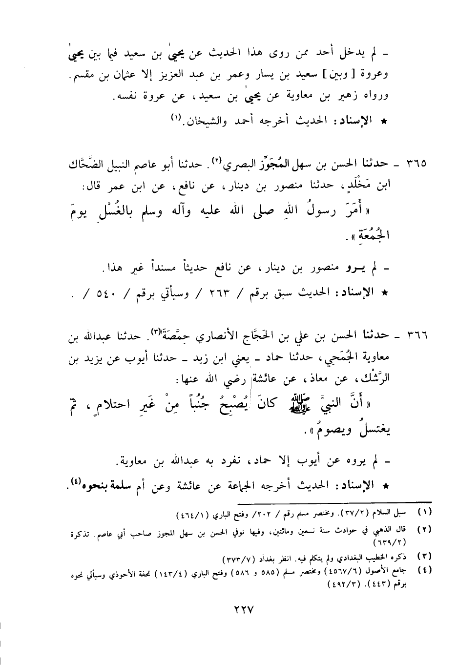 365 - حَدَّثَنَا الْحَسَنُ بْنُ سَهْلٍ الْمُجَوِّزُ الْبَصْرِيُّ، حَدَّثَنَا أَبُو عَاصِمٍ النَّبِيلُ الضَّحَّاكُ بْنُ مَخْلَدٍ، حَدَّثَنَا مَنْصُورُ بْنُ دِينَارٍ، عَنْ نَافِعٍ، عَنِ ابْنِ عُمَرَ قَالَ: «§أَمَرَ رَسُولُ اللَّهِ صَلَّى اللَّهُ عَلَيْهِ وَآلِهِ وَسَلَّمَ بِالْغُسْلِ يَوْمَ الْجُمُعَةِ» لَمْ يَرْوِ مَنْصُورُ بْنُ دِينَارٍ عَنْ نَافِعٍ حَدِيثًا مُسْنَدًا غَيْرَ هَذَا
