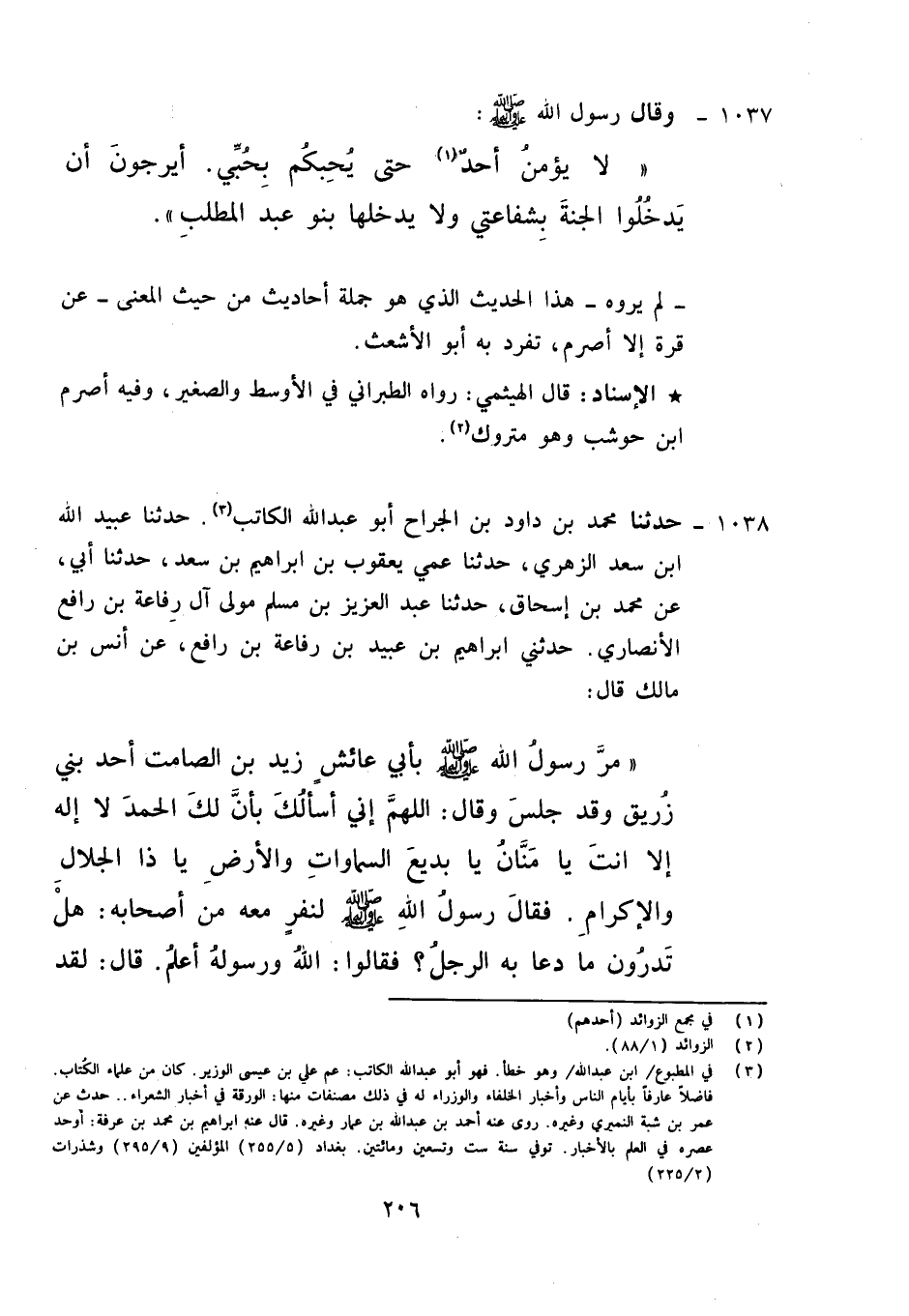1037 - وَقَالَ رَسُولُ اللَّهِ صَلَّى اللَّهُ عَلَيْهِ وَآلِهِ وَسَلَّمَ: «§لَا يُؤْمِنُ أَحَدُكُمْ حَتَّى يُحِبَّكُمْ بِحُبِّي، أَتَرْجُونَ أَنْ يَدْخُلُوا الْجَنَّةَ بِشَفَاعَتِي وَلَا يَدْخُلُهَا بَنُو عَبْدِ الْمُطَّلِبِ» لَمْ يَرْوِهِ عَنْ قُرَّةَ إِلَّا أَصْرَمُ تَفَرَّدَ بِهِ أَبُو الْأَشْعَثِ