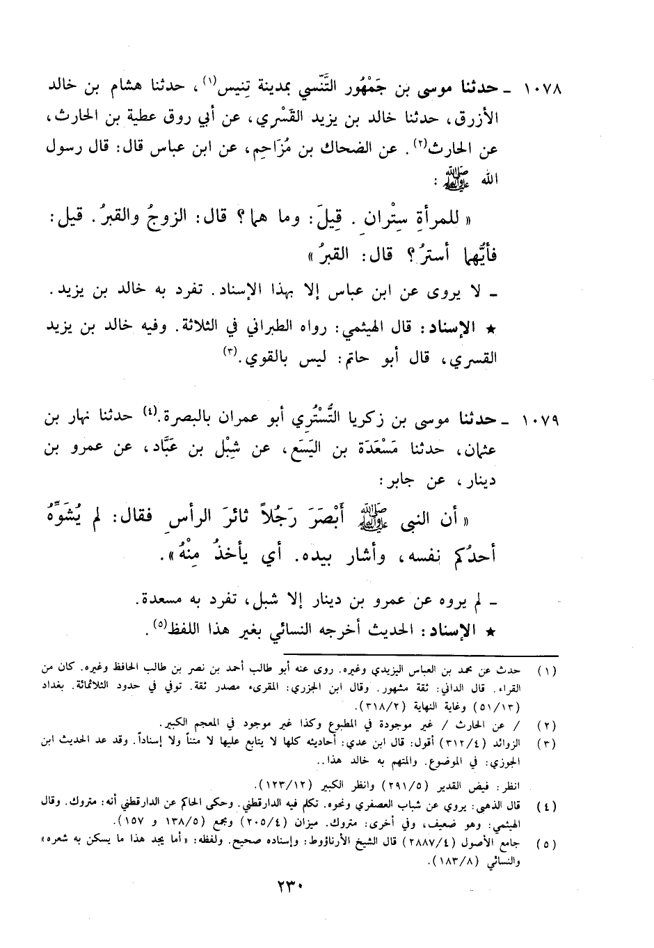 1079 - حَدَّثَنَا مُوسَى بْنُ زَكَرِيَّا التُّسْتَرِيُّ أَبُو عِمْرَانَ بِالْبَصْرَةِ , حَدَّثَنَا نَهَارُ بْنُ عُثْمَانَ، حَدَّثَنَا مَسْعَدَةُ بْنُ الْيَسَعِ، عَنْ شِبْلِ بْنِ عَبَّادٍ، عَنْ عَمْرِو بْنِ دِينَارٍ، عَنْ جَابِرٍ أَنَّ النَّبِيَّ صَلَّى اللَّهُ عَلَيْهِ وَآلِهِ وَسَلَّمَ: أَبْصَرَ رَجُلًا ثَائِرَ الرَّأْسِ , فَقَالَ: «§لِمَ يُشَوِّهْ أَحَدُكُمْ نَفْسَهُ؟» , وَأَشَارَ بِيَدِهِ أَيْ يَأْخُذُ مِنْهُ، لَمْ يَرْوِهِ عَنْ عَمْرِو بْنِ دِينَارٍ إِلَّا شِبْلٌ تَفَرَّدَ بِهِ مَسْعَدَةُ