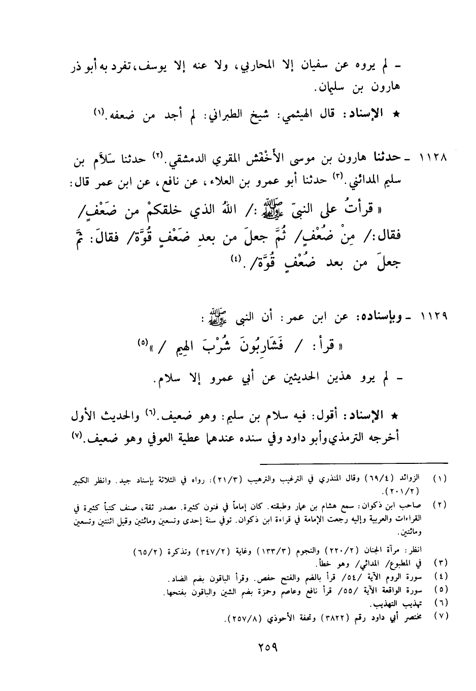 1129 - وَبِإِسْنَادِهِ عَنِ ابْنِ عُمَرَ، أَنَّ النَّبِيَّ صَلَّى اللَّهُ عَلَيْهِ وَآلِهِ وَسَلَّمَ قَرَأَ {§فَشَارِبُونَ شُرْبَ الْهِيمِ} [الواقعة: 55] لَمْ يَرْوِ هَذَيْنِ الْحَدِيثَيْنِ عَنْ أَبِي عَمْرٍو إِلَّا سَلَّامٌ