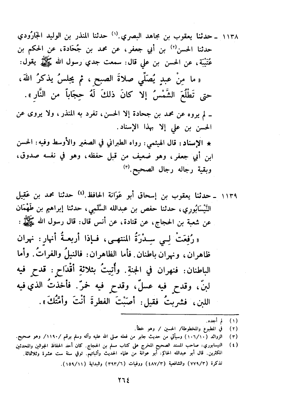 1138 - حَدَّثَنَا يَعْقُوبُ بْنُ مُجَاهِدٍ الْبَصْرِيُّ، حَدَّثَنَا الْمُنْذِرُ بْنُ الْوَلِيدِ الْجَارُودِيُّ، حَدَّثَنَا الْحُسَيْنُ بْنُ أَبِي جَعْفَرٍ، عَنْ مُحَمَّدِ بْنِ جُحَادَةَ، عَنِ الْحَكَمِ بْنِ عُتَيْبَةَ، عَنِ الْحَسَنِ بْنِ عَلِيٍّ، قَالَ: سَمِعْتُ جَدِّي رَسُولَ اللَّهِ صَلَّى اللَّهُ عَلَيْهِ وَآلِهِ وَسَلَّمَ يَقُولُ: «§مَا مِنْ عَبْدٍ يُصَلِّي صَلَاةَ الصُّبْحِ , ثُمَّ يَجْلِسُ يَذْكُرُ اللَّهَ حَتَّى تَطْلُعَ الشَّمْسُ إِلَّا كَانَ ذَلِكَ لَهُ حِجَابًا مِنَ النَّارِ» لَمْ يَرْوِهِ عَنْ مُحَمَّدِ بْنِ جُحَادَةَ إِلَّا الْحَسَنُ تَفَرَّدَ بِهِ الْمُنْذِرُ , وَلَا يُرْوَى عَنِ الْحَسَنِ بْنِ عَلِيٍّ إِلَّا بِهَذَا الْإِسْنَادِ