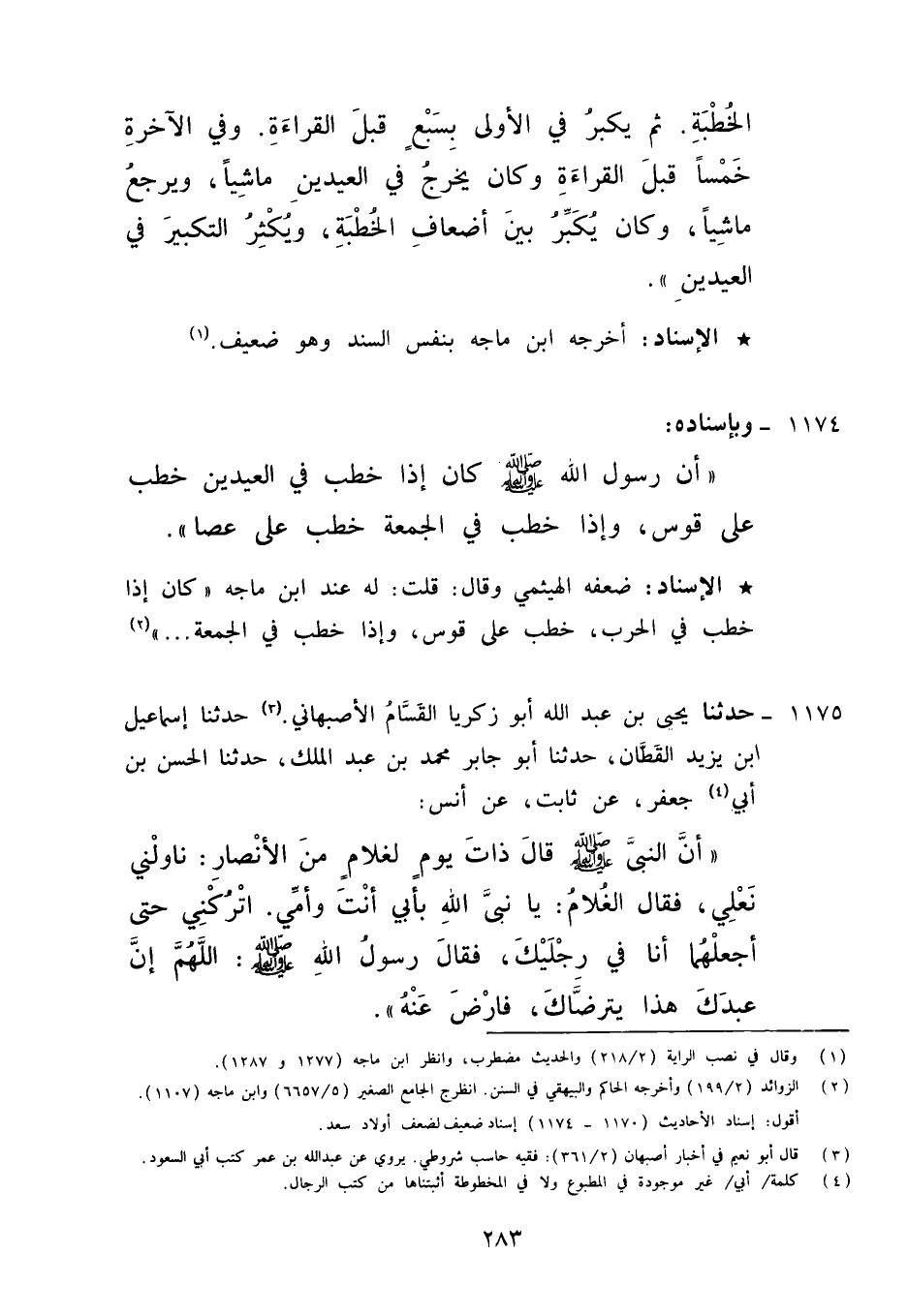 1174 - وَبِإِسْنَادِهِ أَنَّ رَسُولَ اللَّهِ صَلَّى اللَّهُ عَلَيْهِ وَآلِهِ وَسَلَّمَ: «كَانَ §إِذَا خَطَبَ فِي الْعِيدَيْنِ خَطَبَ عَلَى قَوْسٍ , وَإِذَا خَطَبَ فِي الْجُمُعَةِ خَطَبَ عَلَى عَصًا»