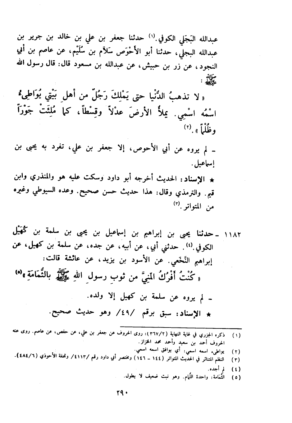 1182 - حَدَّثَنَا يَحْيَى بْنُ إِبْرَاهِيمَ بْنِ إِسْمَاعِيلَ بْنِ يَحْيَى بْنِ سَلَمَةَ بْنِ كُهَيْلٍ الْكُوفِيُّ، حَدَّثَنِي أَبِي، عَنْ أَبِيهِ، عَنْ جَدِّهِ، عَنْ سَلَمَةَ بْنِ كُهَيْلٍ، عَنْ إِبْرَاهِيمَ النَّخَعِيِّ، عَنِ الْأَسْوَدِ بْنِ يَزِيدَ، عَنْ عَائِشَةَ قَالَتْ: " كُنْتُ §أَفْرُكُ الْمَنِيَّ مِنْ ثَوْبِ رَسُولِ اللَّهِ صَلَّى اللَّهُ عَلَيْهِ وَآلِهِ وَسَلَّمَ بِالثُّمَامَةِ لَمْ يَرْوِهِ عَنْ سَلَمَةَ بْنِ كُهَيْلٍ إِلَّا وَلَدُهُ