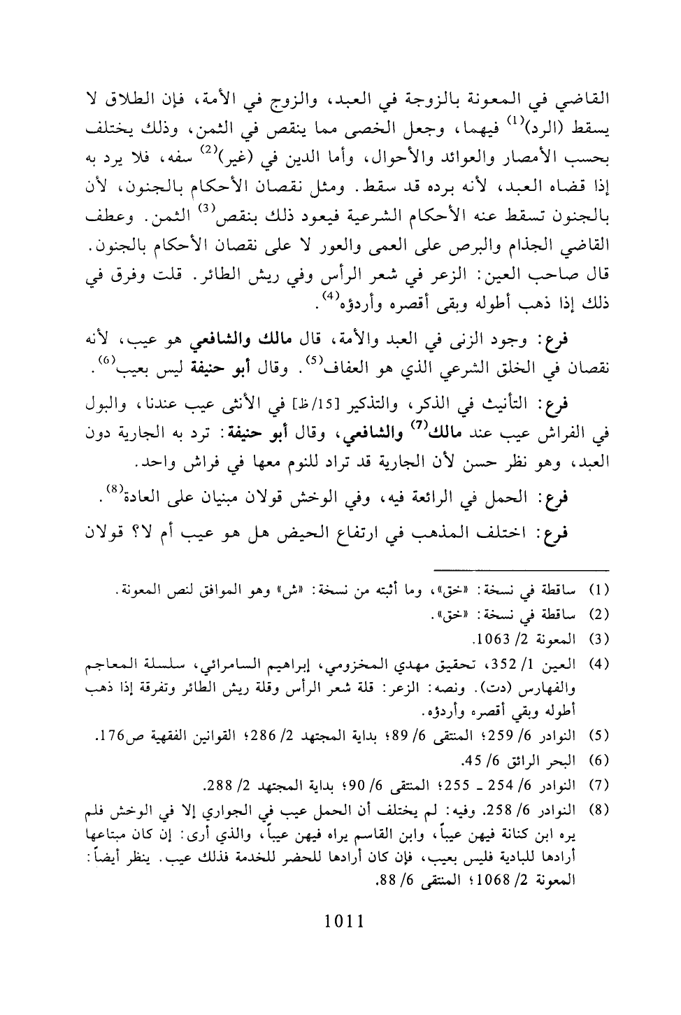 فرع: وجود الزنى في العبد والأمة، قال مالك والشافعي هو عيب، لأنه نقصان في الخلق الشرعي الذي هو العفاف. وقال أبو حنيفة ليس بعيب.