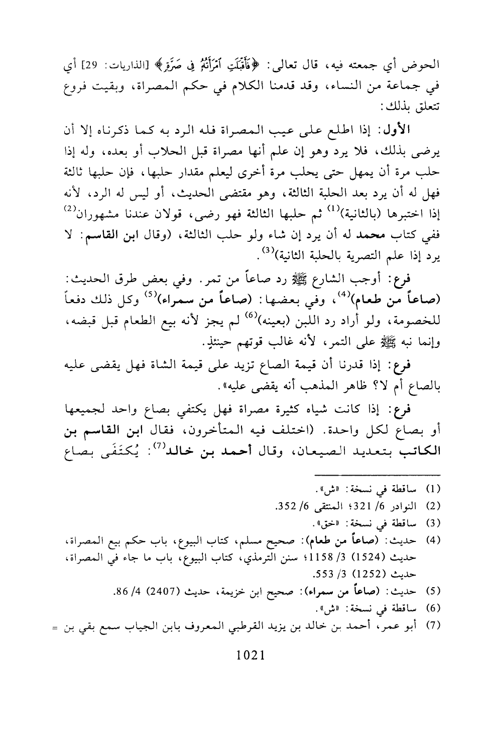 الحوض أي جمعته فيه، قال تعالى: {فأقبلت امرأته في صرةٍ} [الذاريات: 29] أي في جماعةٍ من النساء، وقد قدمنا الكلام في حكم المصراة، وبقيت فروع تتعلق بذلك: