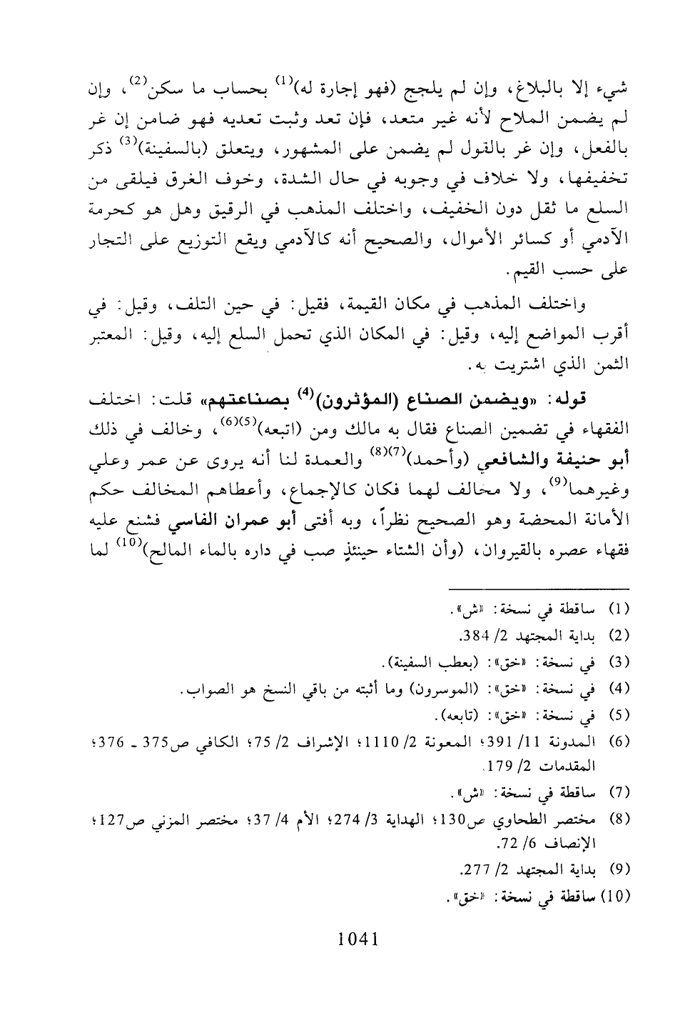 قوله: "ويضمن الصناع (المؤثرون) بصناعتهم" قلت: اختلف الفقهاء في تضمبن الصناع فقال به مالك ومن (اتبعه)، وخالف في ذلك أبو حنيفة والشافعي (وأحمد) والعمدة لنا أنه يروى عن عمر وعلي وغيرهما، ولا مخالف لهما فكان كالإجماع، وأعطاهم المخالف حكم الأمانة المحضة وهو الصحيح نظرًا، وبه أفتى أبو عمران الفاسي فشنع عليه فقهاء عصره بالقيروان، (وأن الشتاء حينئذٍ صب في داره بالماء المالح) لما