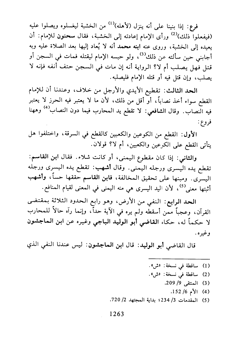 الحد الرابع: النفي في الأرض، وهو رابع الحدود الثلاثة بمقتضى القرآن، وعجبًا ممن أسقطه ولم يره في الآية حدًا، وإنما رآه حالاً للمحارب لا حكمًا له، حكاه القاضي أبو الوليد الباجي وغيره عن ابن الماجشون وغيره.