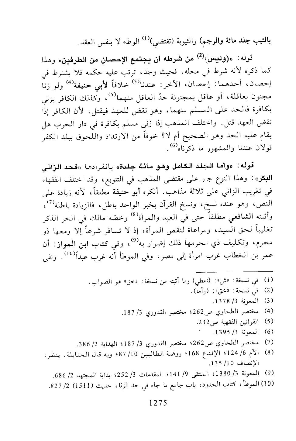 قوله: "وأما الجلد الكامل وهو مائة جلدة" بانفرادها "فحد الزاني البكر": وهذا النوع جبر على مقتضى المذهب في التنويع، وقد اختلف الفقهاء في تغريب الزاني على ثلاثة مذاهب. أنكره أبو حنيفة مطلقًا، لأنه زيادة على النص، وهو عنده نسخ، ونسخ القرآن بخبر الواحد باطل، فالزيادة باطلة، وأثبته الشافعي مطلقًا حتى في العبد والمرأة وخصه مالك في الحر الذكر تغليبًا لحق السيد، ومراعاة لنقص المرأة، إذ لا تسافر شرعًا إلا ومعها ذو محرم، وتكليف ذي محرمها ذلك إضرار به، وفي كتاب ابن المواز: أن عمر بن الخطاب غرب امرأة إلى مصر، وفي الموطأ أنه غرب عبدًا. ونفى