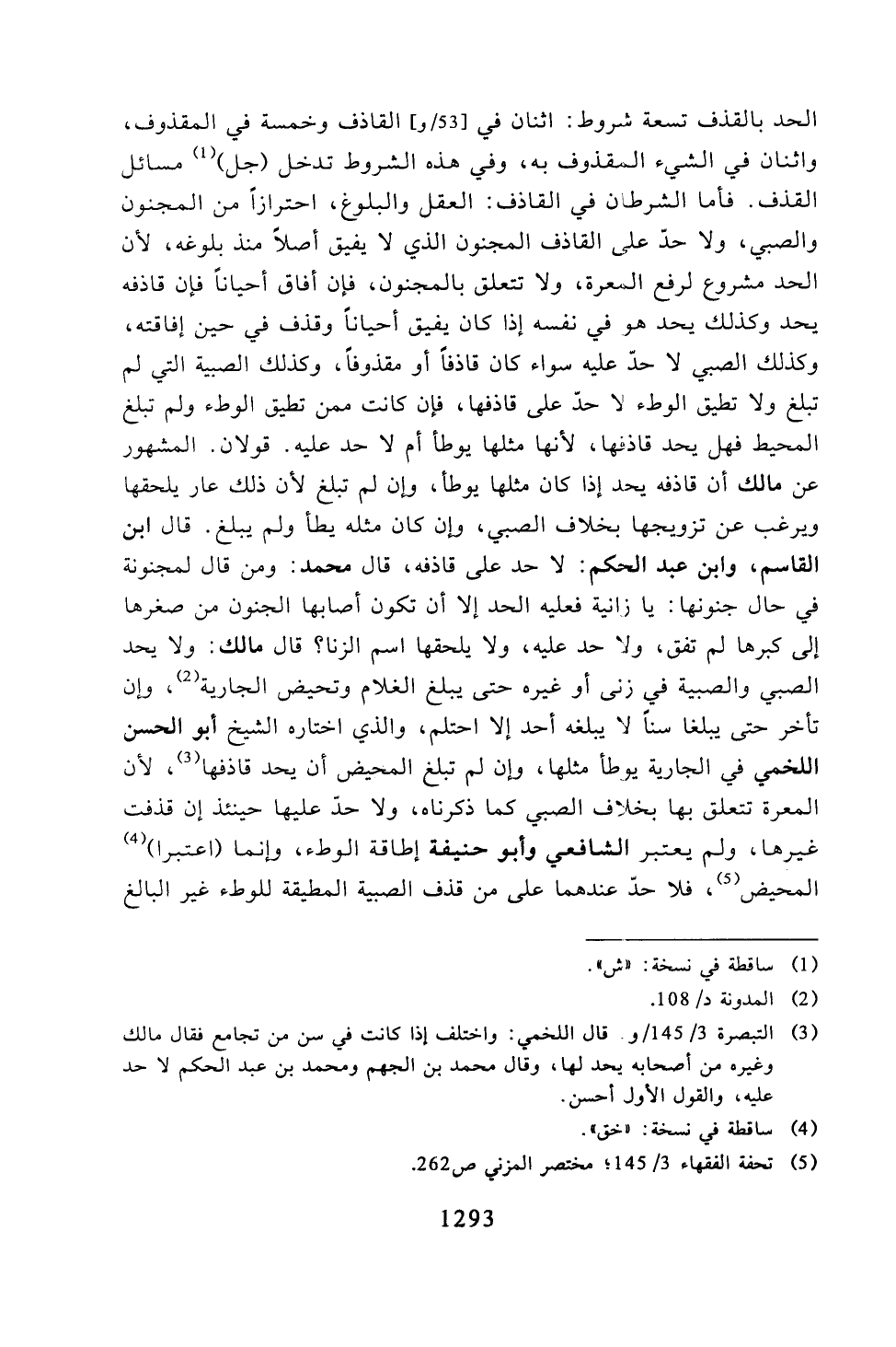 الحد بالقذف تسعة شروط: اثنان في القاذف وخمسة في المقذوف، واثنان في الشيء المقذوف به، وفي هذه الشروط تدخل (جل) مسائل القذف. فأما الشرطان في القاذف: العقل والبلوغ، احترازًا من المجنون والصبي، ولا حد على القاذف المجنون الذي لا يفيق أصلًا منذ بلوغه، لأن الحد مشروع لرفع المعرة، ولا تتعلق بالمجنون، فإن أفاق أحيانًا فإن قاذفه يحد وكذلك يحد هو في نفسه إذا كان قاذفًا أو مقذوفًا، وكذلك الصبية التي لم تبلغ ولا تطيق الوطء لا حد عليه سواء كان قاذفًا أو مقذوفًا، وكذلك الصبية التي لم تبلغ ولا تطيق الوطء لا حد على قاذفها، فإن كانت ممن تطيق الوطء ولم تبلغ المحيط فهل يحد قاذفها، لأنها مثلها يوطأ أم لا حد عليه. قولان. المشهور عن مالك أن قاذفه يحد إذا كان مثلها يوطأ، وإن لم تبلغ لأن ذلك عار يلحقها ويرغب في تزويجها بخلاف الصبي، وإن كان مثله يطأ ولم يبلغ. قال ابن القاسم، وابن عبد الحكم: لا حد على قاذفه، قال محمد: ومن قال لمجنونة في حال جنونها: يا زانية فعليه الحد إلا أن تكون أصابها الجنون من صغرها إلى كبرها لم تفق، ولا حد عليه، ولا يلحقها اسم الزنا؟ قال مالك: ولا يحد الصبي والصبية في زنى أو غيره حتى يبلغ الغلام وتحيض الجارية، وإن تأخر حتى يبلغا سنًا لا يبلغه أحد إلا احتلم، والذي اختاره الشيخ أبو الحسن اللخمي في الجارية يوطأ مثلها، وإن لم تبلغ المحيض أن يحد قاذفها، لأن المعرة تتعلق بها بخلاف الصبي كما ذكرناه، ولا حد عليها حينئذ إن قذفت غيرها، ولم يعتبر الشافعي وأبو حنيفة إطاقة الوطء، وإنما (اعتبرا) المحيض، فلا حد عندهما على من قذف الصبية المطيقة للوطء غير البالغ