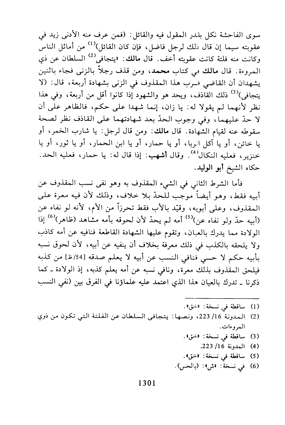 فأما الشرط الثاني في الشيء المقذوف به وهو نفى نسب المقذوف عن أبيه فقط، وهو أيضًا موجب للحد بلا خلاف، وذلك لأن فيه معرة على المقذوف، وعلى أبويه، وقيد بالأب فقط تحرزًا من الأم، لأنه لو نفاه عن (أبيه حد ولو نفاه عن) أمه لم يحد لأن لحوقه بأمه مشاهد (ظاهر) إذا الولادة مما يدرك بالعيان، وتقوم عليها الشهادة القاطعة فنافيه عن أمه كاذب ولا يلحقه بالكذب في ذلك معرفة بخلاف أن ينفيه عن أبيه، لأن لحوق نسبه بأبيه حكم لا حسي فنافي النسب عن أبيه لا يعلم صدقه من كذبه فيلحق المقذوف بذلك معرة، ونافي نسبه عن أمه يعلم كذبه، إذ الولادة- كما ذكرنا- تدرك بالعيان هذا الذي اعتمد عليه علماؤنا في الفرق بين (نفي النسب