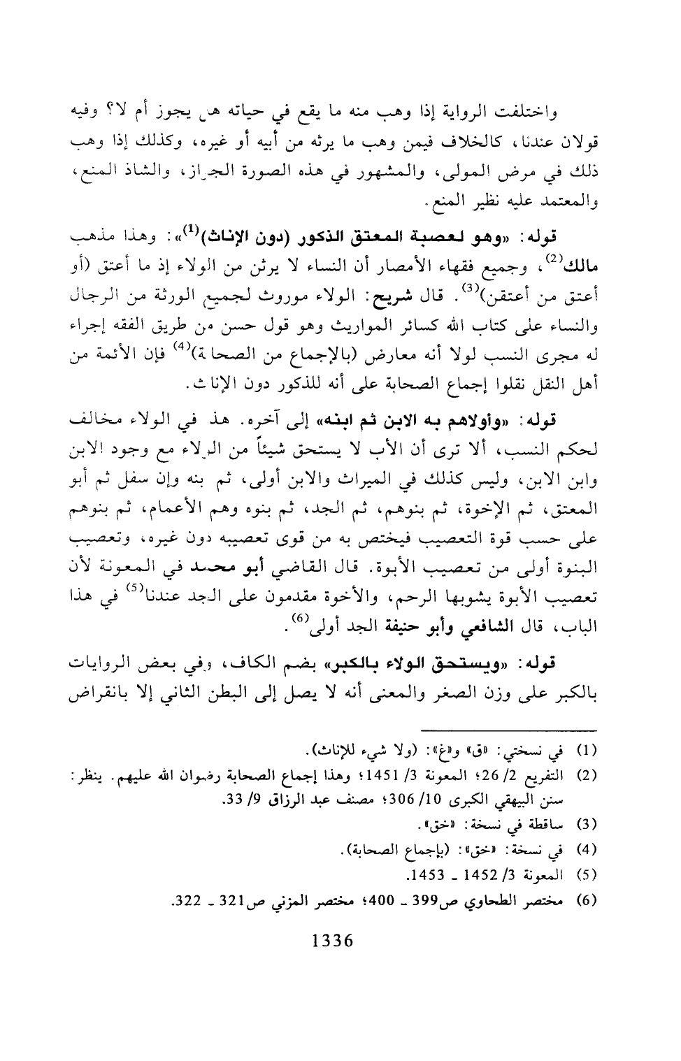 قوله: "وهو لعصبة المعتق الذكور (دون الإناث) ": وهذا مذهب مالك، وجميع فقهاء الأمصار أن النساء لا يرثن من الولاء إذا ما أعتق (أو أعتق م أعتقن). قال شريح: الولاء موروث لجميع الورثة من الرجال والنساء على كتاب الله كسائر المواريث وهو قول حسن من طريق الفقه إجراء له مجرى النسب لولا أنه معارض (بالإجماع من الصحابة) فإن الأئمة من أهل النقل نقلوا إجماع الصحابة على أنه للذكور دون الإناث.