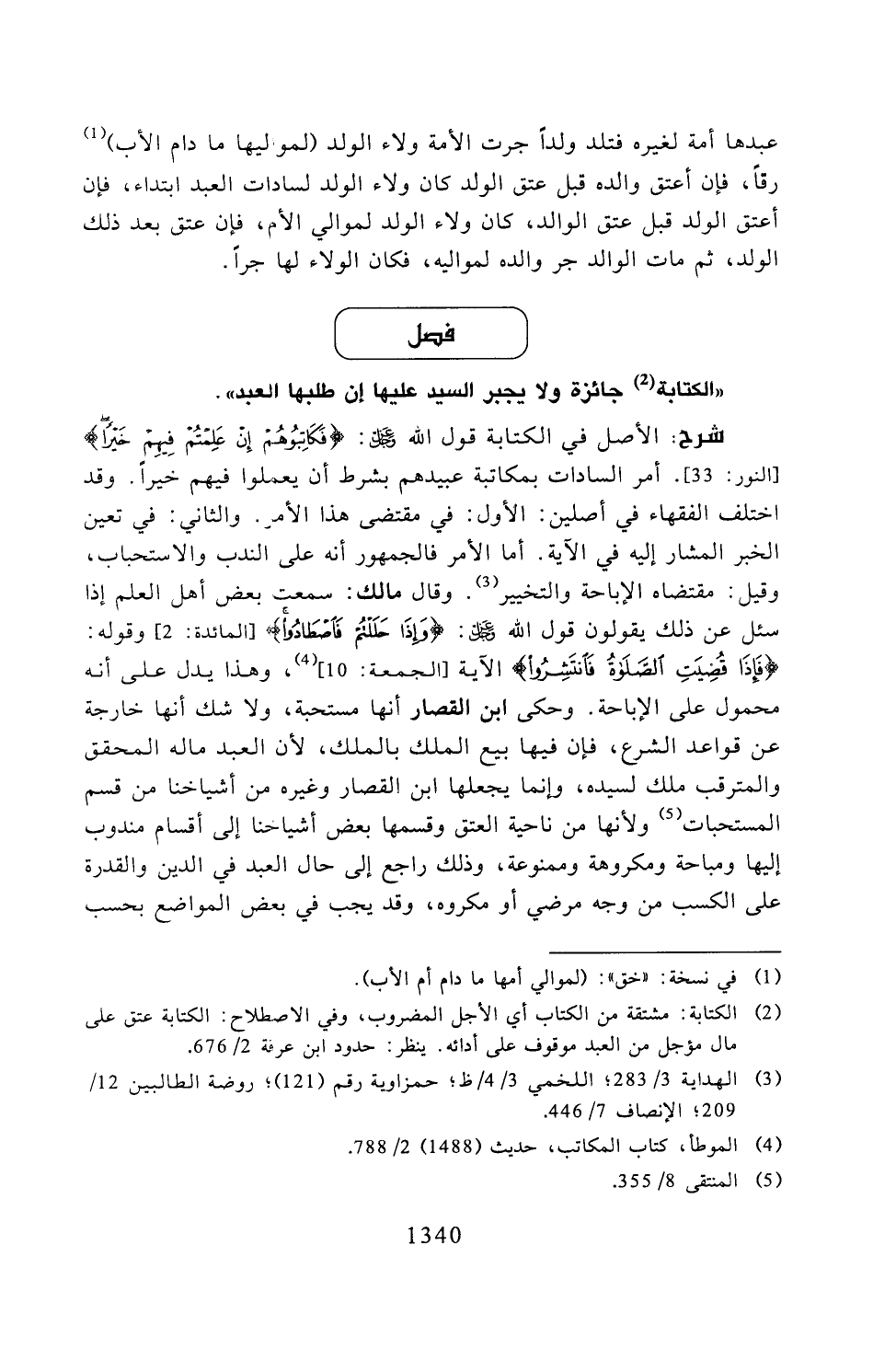 "الكتابة جائزة ولا يجبر السيد عليها إن طلبها العبد".