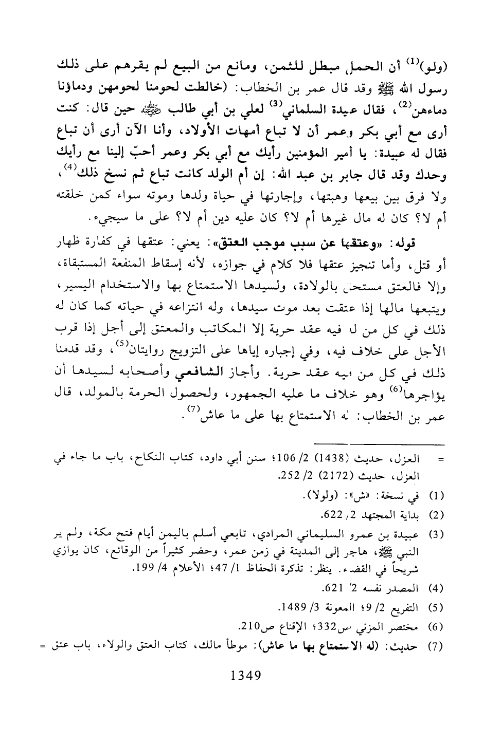 (ولو) أن الحمل مبطل للثمن، ومانع من البيع لم يقرهم على ذلك رسول الله - صلى الله عليه وسلم - وقد قال عمر بن الخطاب: (خالطت لحومنا لحومهن ودماؤنا دماءهن، فقال عيدة السلماني لعلي بن أبي طالب - رضي الله عنه - حين قال: كنت أرى مع أبي بكر وعمر أن لا تباع أمهات الأولاد، وأنا الآن أرى أن تابع فقال له عبيدة: يا أمير المؤمنين رأيك مع أبي بكر وعمر أحبّ إلينا مع رأيك وحدك وقد قال جابر بن عبد الله: إن أم الولد كانت تباع ثم نسخ ذلك، ولا فرق بين بيعها وهبتها، وإجارتها في حياة ولدها وموته سواء كمن خلقته أم لا؟ كان له مال غيرها أم لا؟ كان عليه دين أم لا؟ على ما سيجئ.