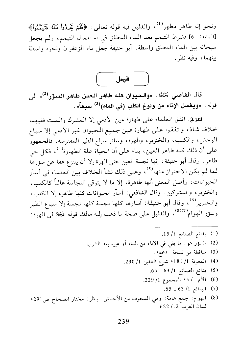 قال القاضي -رحمه الله -: "والحيوان كله طاهر العين طاهر السؤر" إلى قوله: "ويغسل الإناء من ولوغ الكلب (في الماء) سبعًا".