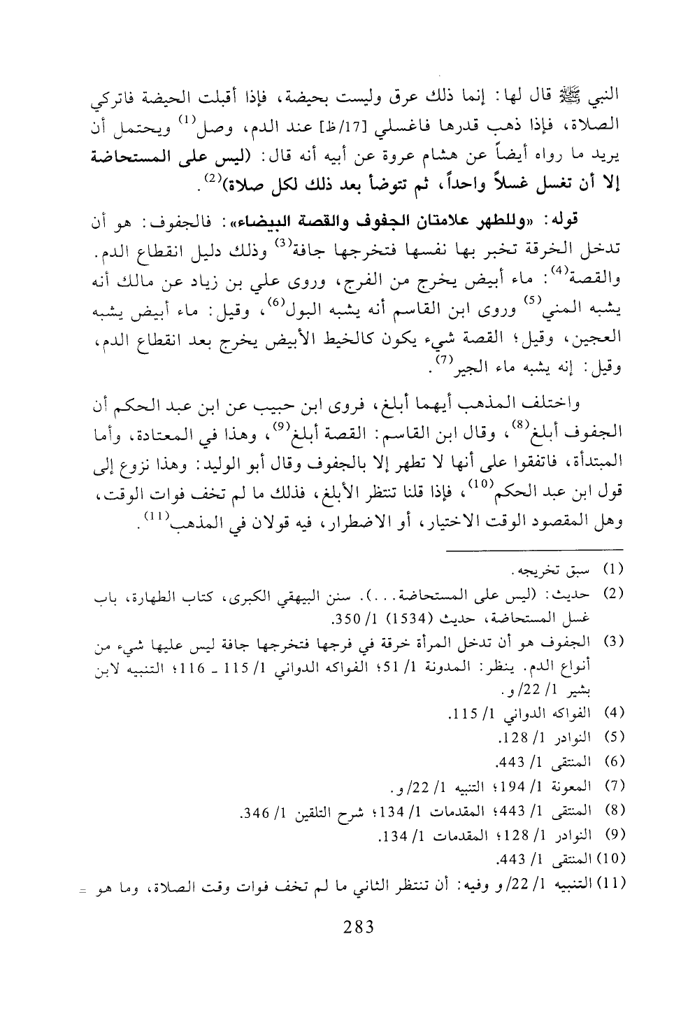 واختلف المذهب أيهما أبلغ، فروى ابن حبيب عن ابن عبد الحكم أن الجفوف أبلغ، وقال ابن القاسم: القصة أبلغ، وهذا في المعتادة، وأما المبتدأة، فاتفقوا على أنها لا تطهر إلا بالجفوف وقال أبو الوليد: وهذا نزوع إلى قول ابن عبد الحكم، فإذا قلنا تنتظر الأبلغ، فذلك ما لم تخف فوات الوقت، وهل المقصود الوقت الاختيار، أو الاضطرار، فيه قولان في المذهب.