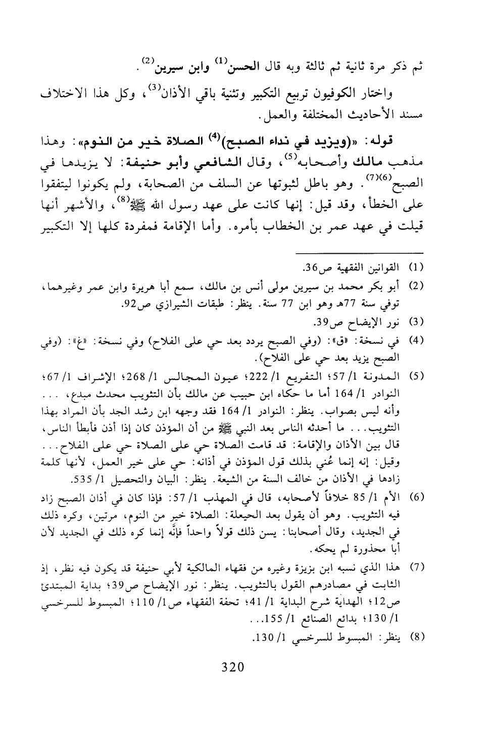 قوله: (((ويزيد في النداء الصبح) الصلاة خير من النوم)): وهذا مذهب مالك وأصحابه، وقال الشافعي وأبو حنيفة: لا يزيدها في الصبح. وهو باطل لثبوتها عن السلف من الصحابة، ولم يكونوا ليتفقوا على الخطأ، وقد قيل: إنها كانت على عهد رسول الله -صلى الله عليه وسلم-، والأشهر أنها قيلت في عهد عمر بن الخطاب بأمره. وأما الإقامة فمفردة كلها إلا التكبير