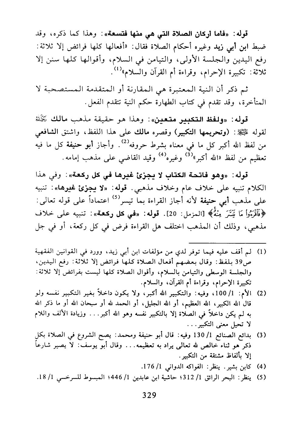 قوله: ((فأما أركان الصلاة التي هي منها فتسعة)): وهذا كما ذكره، وقد ضبط ابن أبي زيد وغيره أحكام الصلاة فقال: ((أفعالها كلها فرائض إلا ثلاثة: رفع اليدين والجلسة الأولى، والتيامن في السلام، وأقوالها كلها سنن إلا ثلاثة: تكبيرة الإحرام، وقراءة أم القرآن والسلام)).