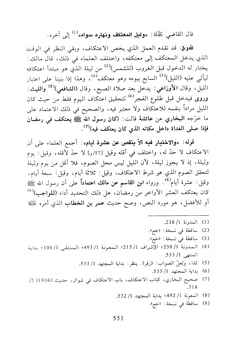 قال القاضي -رحمه الله-: " وليل المعتكف ونهاره سواء" إلى آخره.