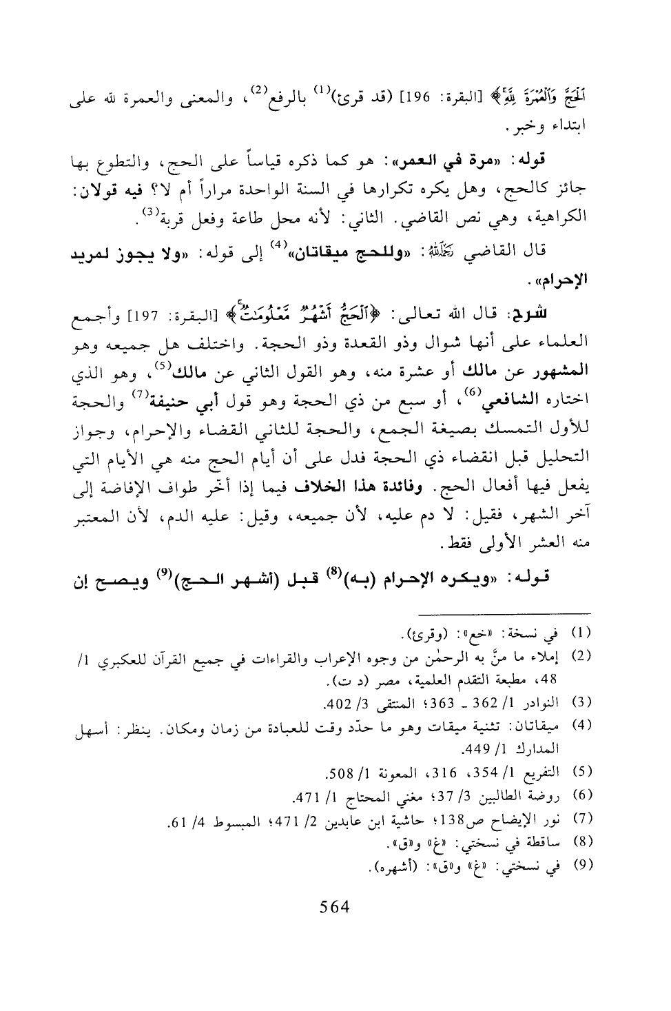 الحج والعمرة لله} [البقرة: 196] (قد قرئ) بالرفع، والمعنى والعمرة لله على ابتداء وخبر.