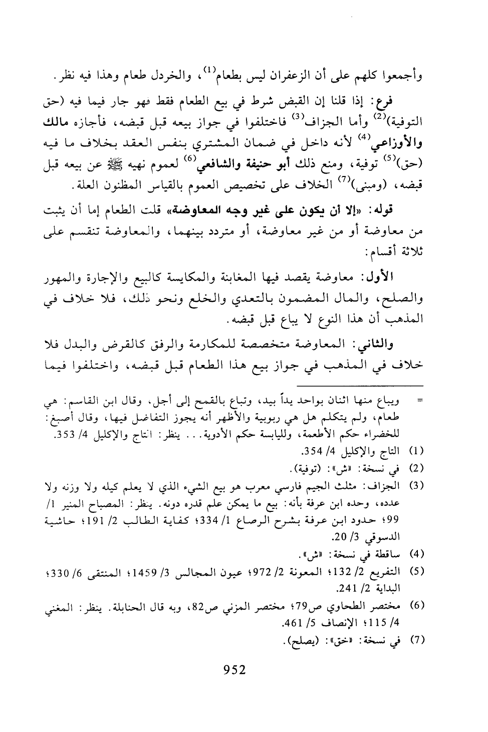 قوله: «إلا أن يكون على غير وجه المعاوضة» قلت الطعام إما أن يثبت من معاوضة أو من غير معاوضة، أو متردد بينهما، والمعاوضة تنقسم على ثلاثة أقسام:
