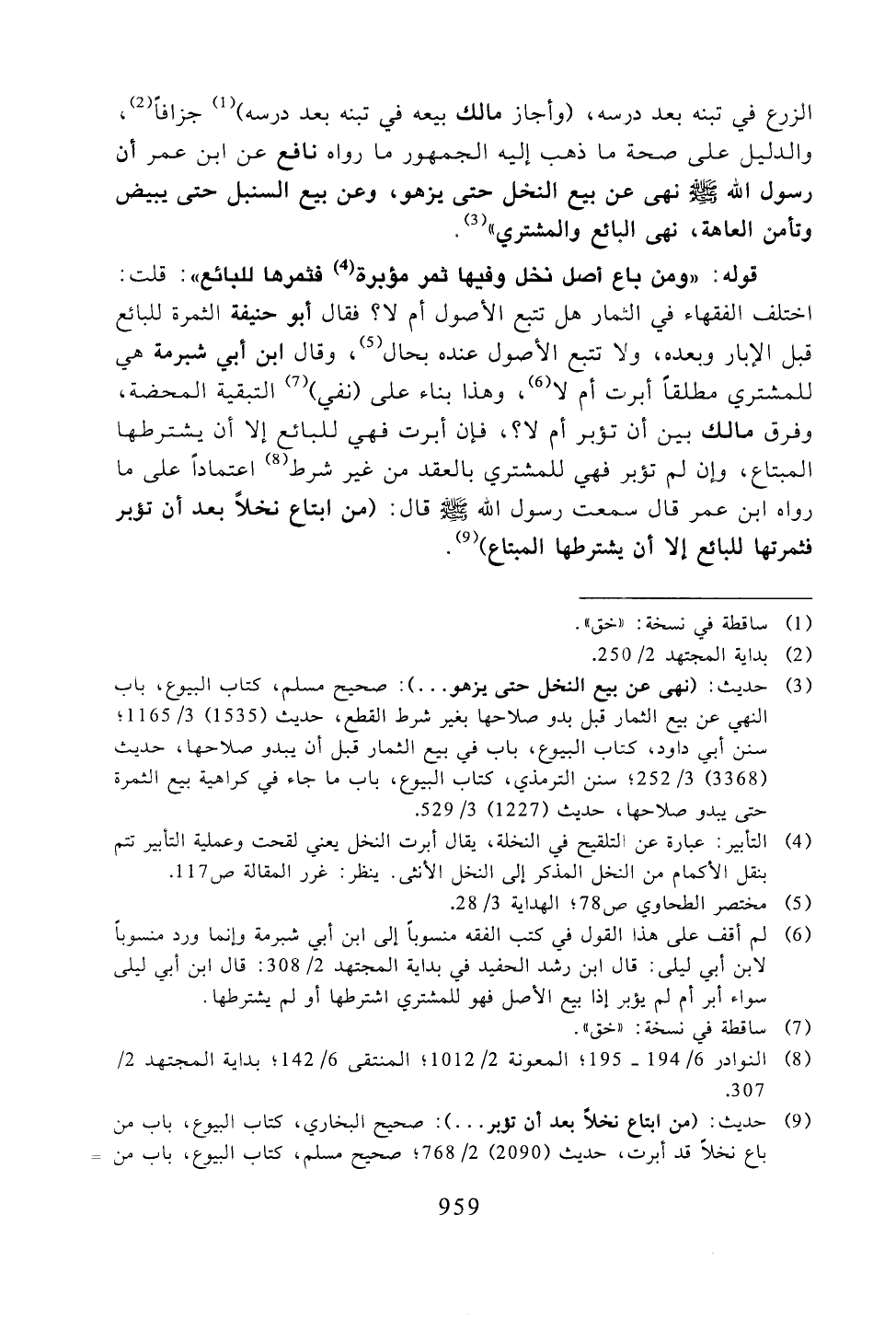 الزرع في تبنه بعد درسه، (وأجاز مالك بيعه في تبنه بعد درسه) جزافًا، والدليل على صحة ما ذهب إليه الجمهور ما رواه نافع عن ابن عمر أن رسول الله صلى الله عليه وسلم نهى عن بيع النخل حتى يزهو، وعن بيع السنبل حتى يبيض وتأمن العاهة، نهى البائع والمشتري"