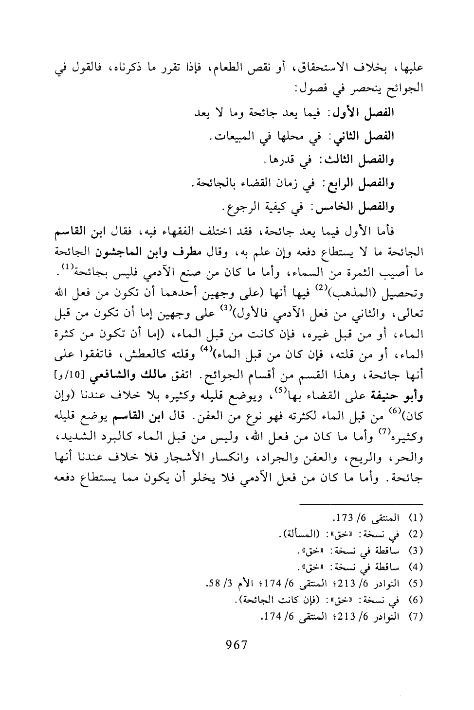 عليها بخلاف الاستحقاق، أو نقص الطعام، فإذا تقرر ما ذكرناه، فالقول في الجوائح ينحصر في فصول: