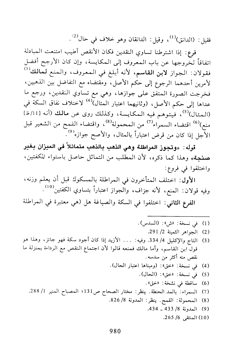 الفرع الثاني: اختلفوا في السكة والصياغة هل (هي معتبرة في المراطلة