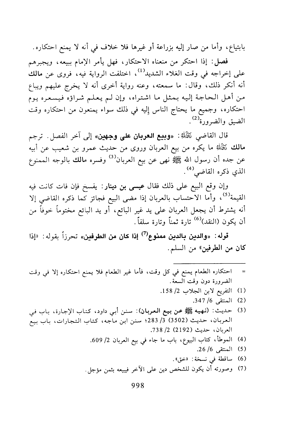 قال القاضي رحمه الله: «وبيع العربان على وجهين» إلى آخر الفصل، ترجم مالك رحمه الله ما يكره من بيع العربان وروى من حديث عمرو بن شعيب عن أبيه عن جده أن رسول الله صلى الله عليه وسلم نهى عن بيع العربان وفسره مالك بالوجه الممنوع الذي ذكره القاضي.