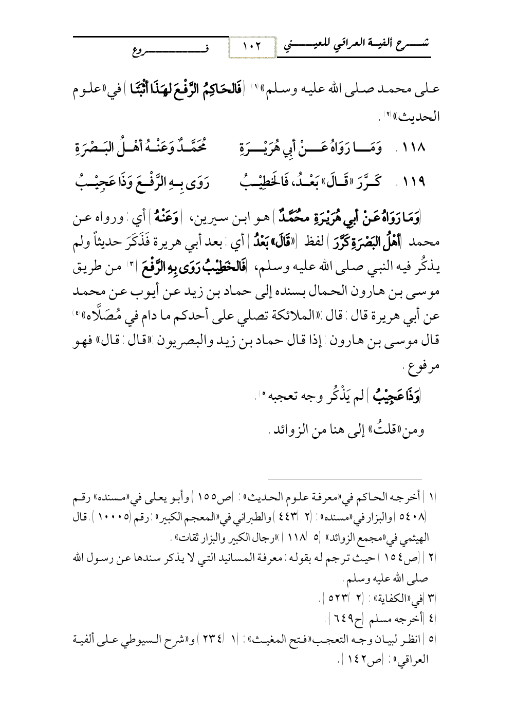 (¬5) انظر لبيان وجه التعجب «فتح المغيث»: (1/ 234) و «شرح السيوطي على ألفية العراقي»: (ص142).