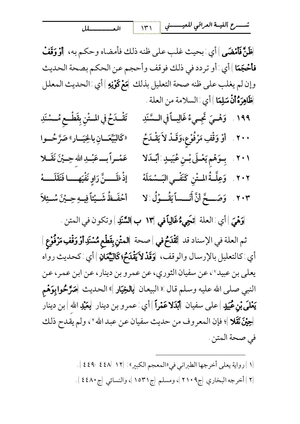 200 - أوْ وَقْفِ مَرْفُوْعٍ، وَقَدْ لاَ يَقْدَحُ ... «كَالبَيِّعَانِ بالخِيَار» صَرَّحُوا