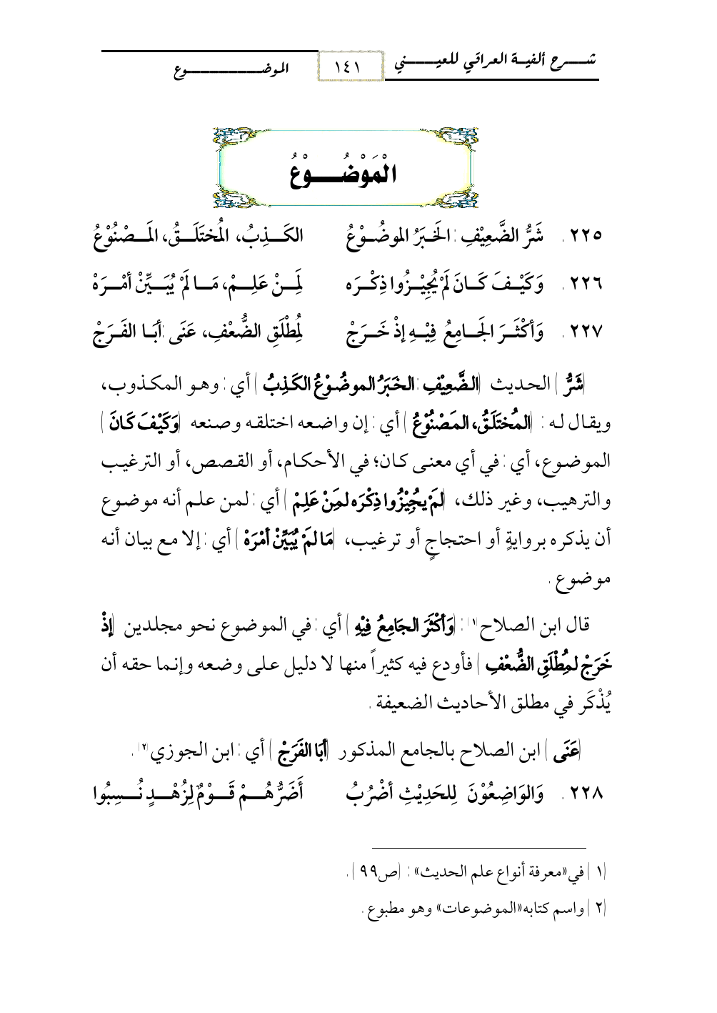 228 - وَالوَاضِعُوْنَ لِلحَدِيْثِ أضْرُبُ ... أَضَرُّهُمْ قَوْمٌ لِزُهْدٍ نُسِبُوا
