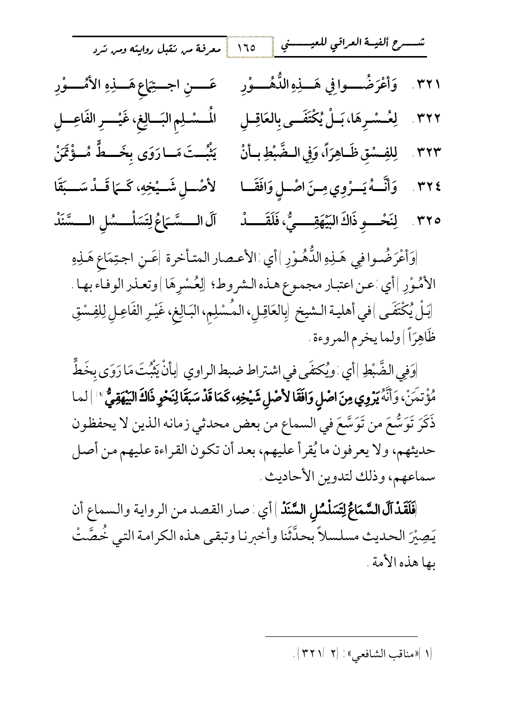 325 - لِنَحْوِ ذَاكَ البَيْهَقِيُّ، فَلَقَدْ ... آلَ السَّمَاعُ لِتَسَلْسُلِ السَّنَدْ